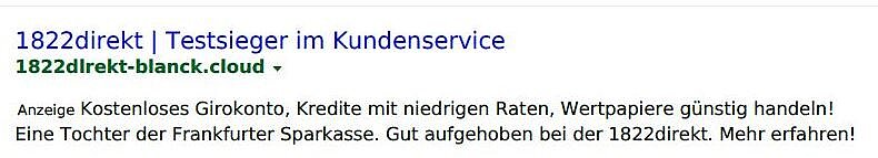 - Die korrekte Adresse unserer Website lautet www.1822direkt.de und die für das Online-Banking www.1822direkt-banking.de